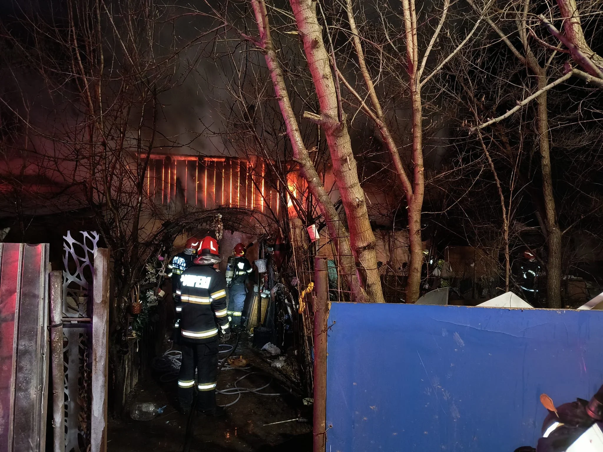Pompierii intervin pentru lichidarea incendiului, iar cauza incendiului urmează să fie stabilită după încheierea misiunii.