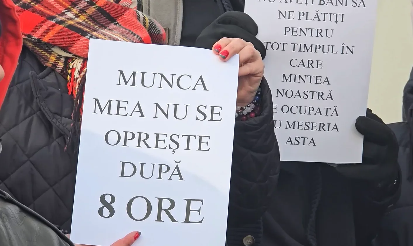 Protest în fața Ministerului Educației, acolo unde, miercuri, cadre didactice și reprezentanți ai sindicatelor au cerut soluții urgente pentru problemele din sistem...