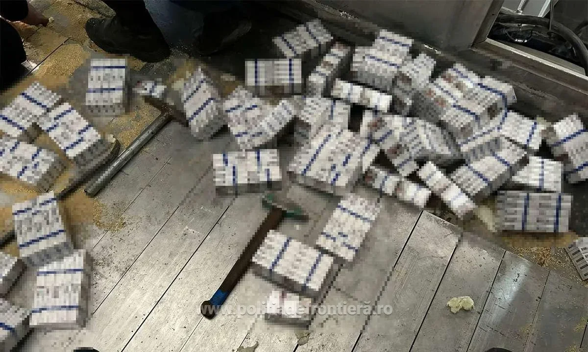 Polițiștii de frontieră din cadrul Sectorului Poliției de Frontieră Siret, în colaborare cu inspectorii vamali din cadrul Biroului Vamal Siret, au descoperit peste 16.000 de pachete de țigări fără timbru fiscal, ascunse într-un camion care transporta furaje de soia vrac. Șoferul camionului, un cetățean polonez de 51 de ani, a fost reținut pentru 24 de ore pentru contrabandă.