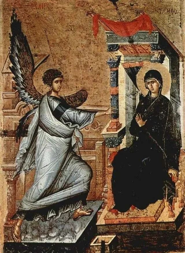 În icoanele bizantine, momentul nu este redat ca o simplă vestire, ci ca un dialog tăcut. Maria nu apare doar ca un personaj care primește un mesaj, ci ca o figură aflată într-un proces interior. Unele reprezentări o arată ușor retrasă, cu palma întoarsă în afară, într-un gest interpretat de istorici ca semn al mirării sau al prudenței. Nu este refuz, dar nici acceptare imediată — ci o clipă de suspendare. În alte imagini, precum cele asociate lui Andrei Rubliov, această tensiune pare să se fi risipit. Capul ușor plecat și mâna dusă spre piept sugerează un răspuns deja formulat, o asumare liniștită. Între aceste două ipostaze — ezitare și consimțire — iconografia construiește o narațiune subtilă despre decizie.
