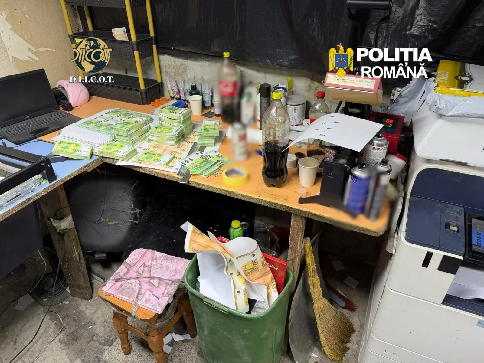 Perchezițiile sunt în desfășurare, iar anchetatorii urmează să ridice mai multe probe din locația în care se fabricau banii. Gruparea era coordonată din Suceava, unde mascații au descins, iar anchetatorii au găsit tipografia și echipamentele folosite pentru falsificarea banilor.