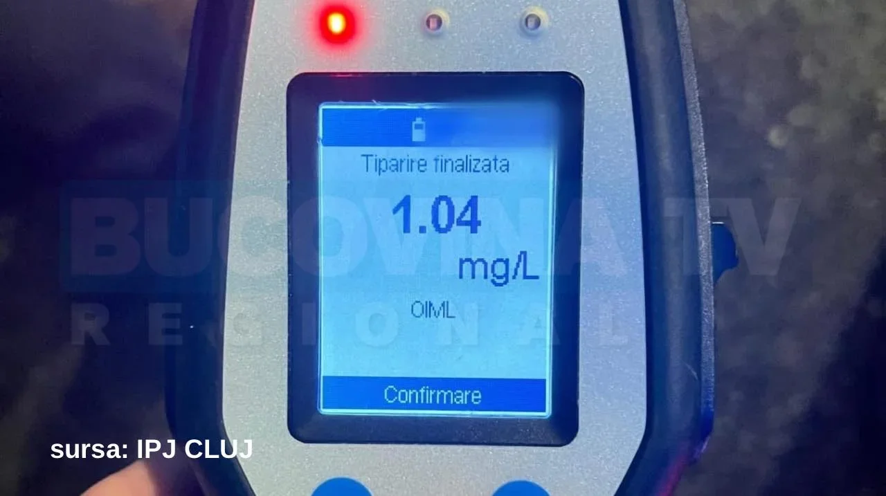 Momentul culminant a venit odată cu testarea alcoolemiei: etilotestul, pus serios la încercare, a afișat 1,04 mg/l alcool pur în aerul expirat, semn că noaptea fusese… productivă. Totul s-a petrecut sub privirile unui tânăr de 22 de ani, martor la un episod care sigur va fi povestit mult timp înainte.