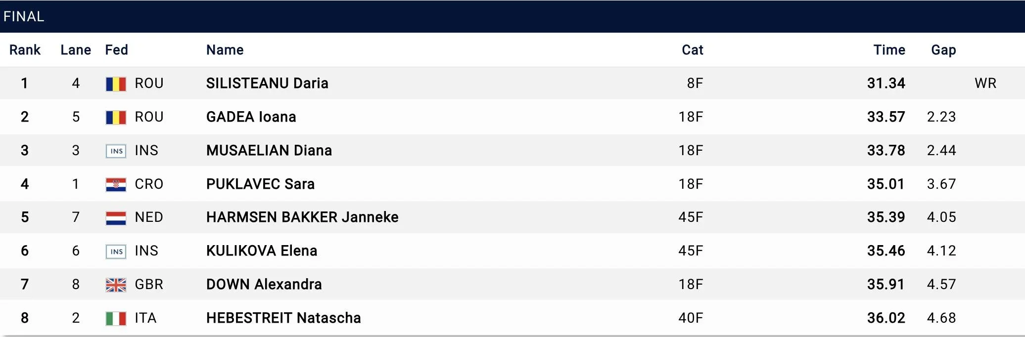 Anterior, Daria Silișteanu a câștigat medalia de aur în proba de 50 metri spate, stabilind un nou record mondial, cu timpul de 31 de secunde și 34 de sutimi. Totodată, Aissia Prisecariu a devenit campioană europeană în proba de 100 metri spate, timpul realizat de un minut, 7 secunde și patru sutimi reprezentând, de asemenea, un nou record mondial. O performanță excelentă a reușit și suceveanca Paula Boleacu (19 ani). Sportiva antrenată de Cezar Moscaliuc a concurat curajos în proba de 50 de metri bras, cucerind medalia de bronz. După primele două zile de concurs, România și-a trecut în cont zece medalii, dintre care patru de aur, trei de argint și trei de bronz. Țara noastră participă la competiția de la Molveno cu 12 înotători de elită și 14 sportivi înscriși la categoria master.