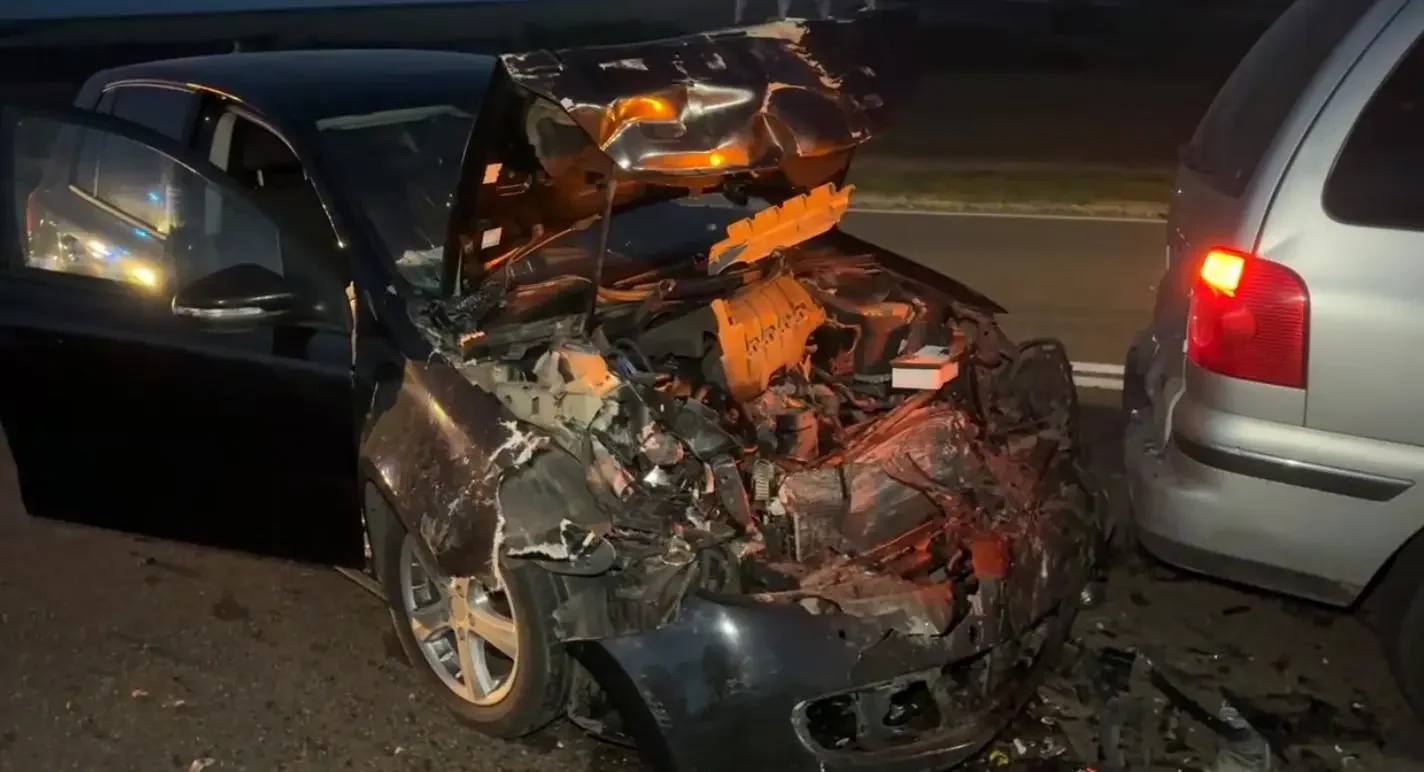 În tot acest timp, un alt autoturism aflat în spatele unei dubițe care reușise să evite impactul a frânat brusc. Mașina care venea din spate nu a mai putut opri la timp și a lovit în plin, din spate, autoturismul din față, avariindu-l grav.