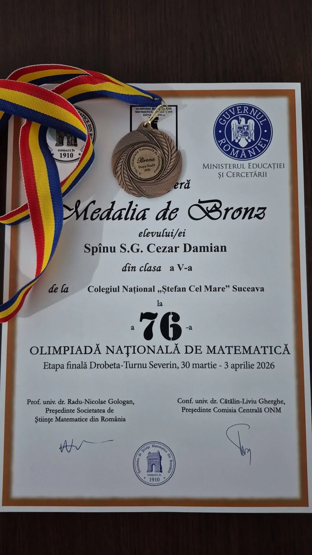 Alți trei elevi au obținut medalii de bronz. Este vorba despre Spînu Cezar Damian, elev în clasa a V-a, Ignat Miriam, elevă în clasa a X-a la Colegiul „Alexandru cel Bun” din Gura Humorului și Aparaschivei Tudor Andrei, elev în clasa a XI-a, toate rezultatele fiind susținute de o pregătire constantă și de implicarea cadrelor didactice.