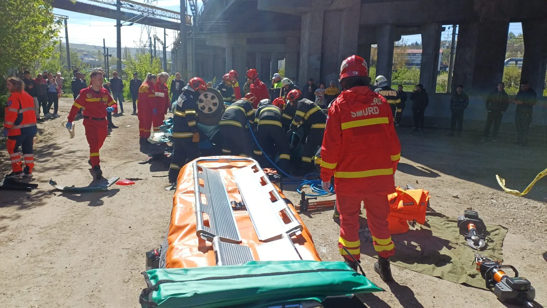 La fața locului au intervenit de urgență echipaje de pompieri, cu autospeciale de descarcerare și un echipaj de terapie intensivă mobilă.