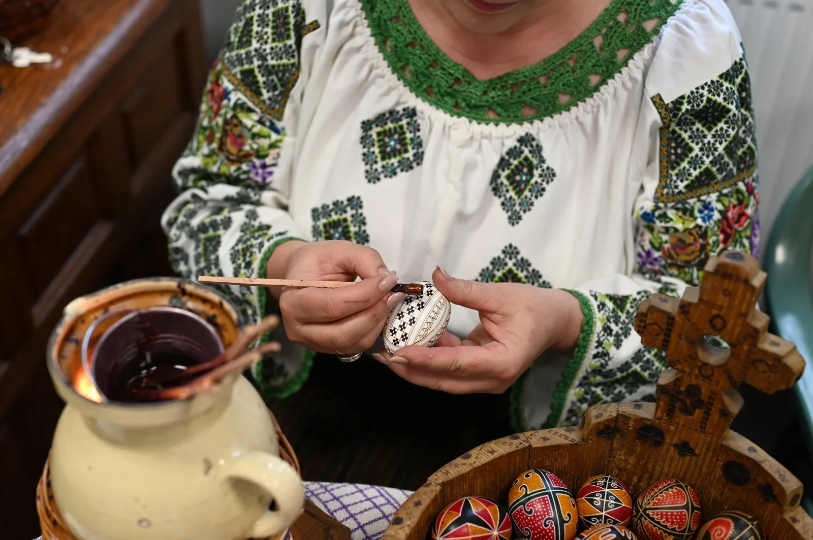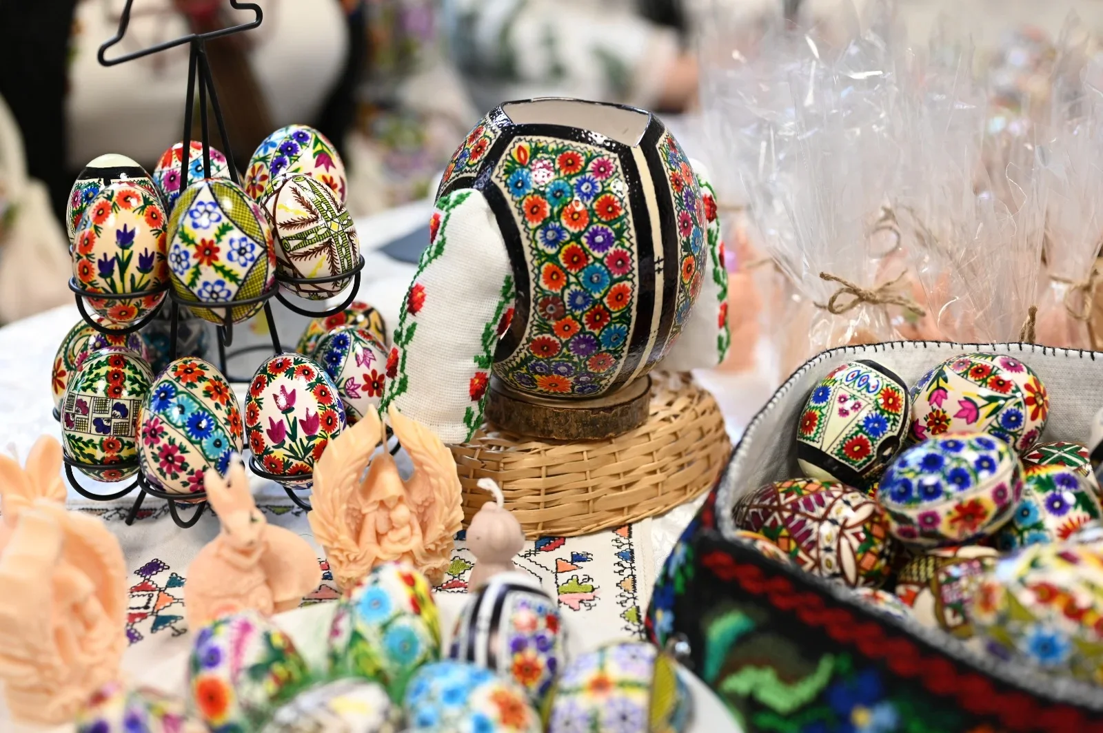 Vizitatorii au avut ocazia să admire o expoziție impresionantă de ouă încondeiate, fiecare piesă purtând o poveste și o simbolistică aparte, transmisă din generație în generație.